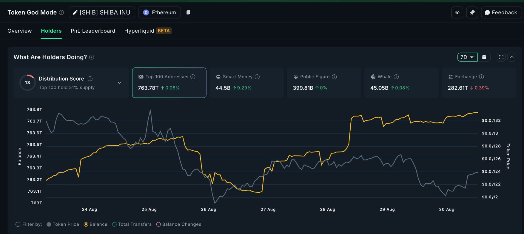 Dữ liệu on-chain xác nhận điều này. Trong tuần vừa qua, các ví tiền thông minh đã tăng 9,29% lượng nắm giữ, bổ sung khoảng 3,78 tỷ SHIB.