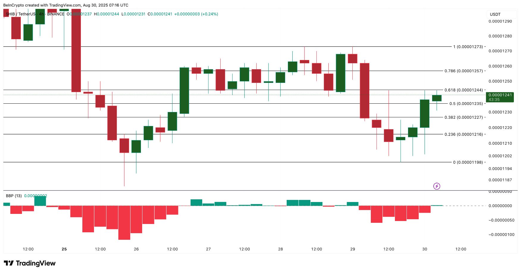 Phân tích kỹ thuật cũng hỗ trợ thêm cho SHIB. Quan sát biểu đồ 4 giờ thường cho thấy các đảo chiều ngắn hạn, SHIB vừa chuyển sang xu hướng tăng sau sáu phiên giảm liên tiếp.