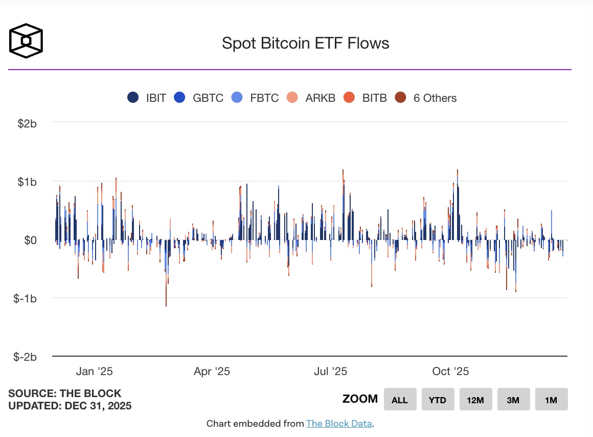 Các quỹ ETF Bitcoin spot từ Ark Invest/21Shares, Bitwise, BlackRock, Fidelity, Franklin Templeton, Grayscale, Invesco, Valkyrie (nay là CoinShares), VanEck và WisdomTree ghi nhận khoảng 21,8 tỷ USD dòng vốn ròng trong năm 2025, theo dữ liệu tổng hợp của The Block, thấp hơn đáng kể so với 35,4 tỷ USD của năm 2024. Tuy vậy, các ETF này vẫn là một trong những sản phẩm ETF thành công nhất, cạnh tranh với những quỹ ETF lớn và lâu đời trên thế giới, bao gồm Vanguard S&P 500 ETF (VOO) và Invesco QQQ Trust (QQQ) theo chỉ số Nasdaq-100.