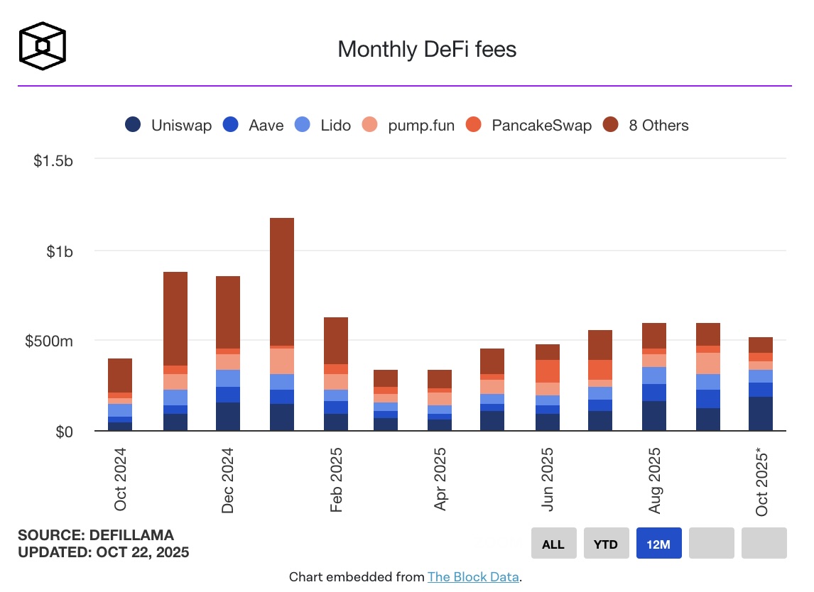 Aave và Uniswap đang dẫn đầu đà phục hồi doanh thu phí trong DeFi, đạt 600 triệu USD, trong khi các dự án như Pump.fun và Raydium cũng bắt đầu áp dụng cơ chế mua lại tương tự.