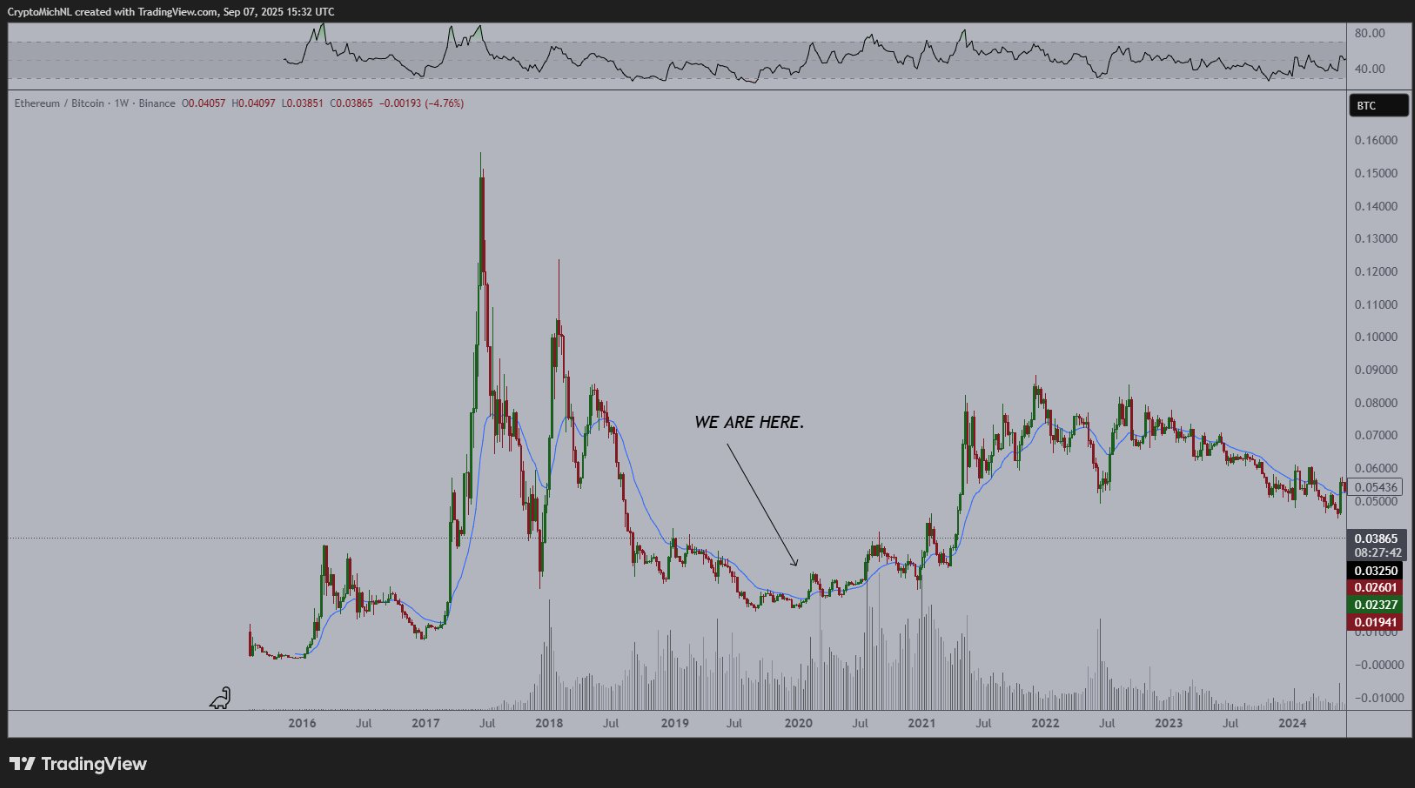 Biểu đồ ETH/BTC hàng tuần | Nguồn: Van de Poppe/X