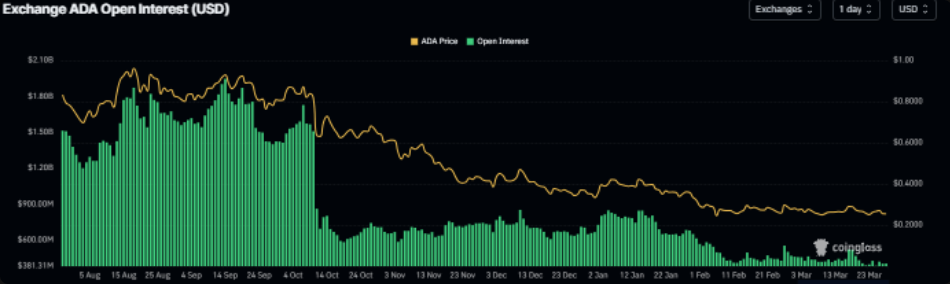 Chỉ số hợp đồng mở (OI) của hợp đồng tương lai ADA đã giảm xuống còn 402,94 triệu USD vào thứ Bảy và duy trì xu hướng đi xuống kể từ giữa tháng 3. Diễn biến này cho thấy dòng tiền đang rút khỏi thị trường, phản ánh sự suy yếu trong mức độ tham gia của nhà đầu tư và củng cố triển vọng kém tích cực trong ngắn hạn.