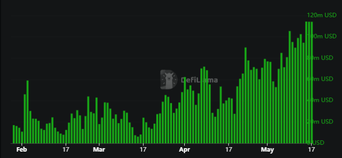 Khối lượng giao dịch DEX hàng ngày của Aptos đã dao động trên 114 triệu USD kể từ giữa tháng 5, minh chứng cho mức độ tiện ích của thị trường phù hợp với sự phục hồi.