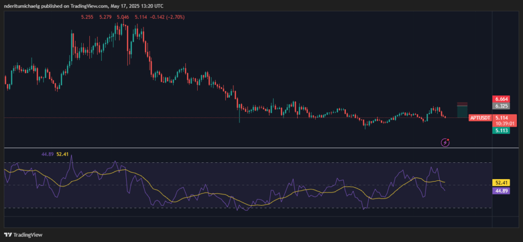 Sự thoái lui của APT đã khiến giá giảm xuống gần mức $5, mức hỗ trợ quan trọng của tháng 2 và tháng 3. Diễn biến giá trong 2 ngày qua cũng cho thấy phe gấu đang hạ nhiệt.