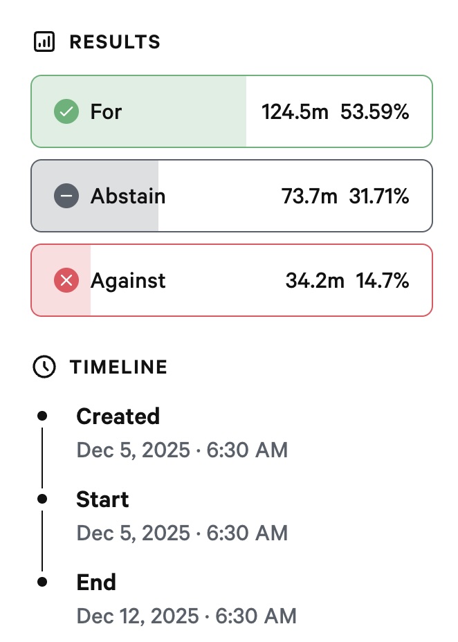 Cuộc bỏ phiếu sẽ kết thúc trong hôm nay, và dữ liệu từ Snapshot cho thấy 53,59% ủng hộ chương trình, 31,71% bỏ phiếu trắng và 14,7% phản đối. Nếu được thông qua, DAO sẽ phân bổ khoảng 1,5 triệu USD mỗi năm để chi trả phần thưởng.