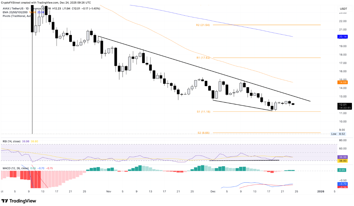 Ở chiều phục hồi, nếu AVAX giữ vững và bật tăng từ vùng 11,18 USD, giá có thể hướng tới đường xu hướng phía trên nối các đỉnh hình thành vào ngày 29/10 và 11/11, với mục tiêu gần quanh 12,78 USD.