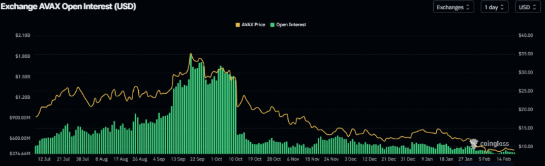 Ở mảng phái sinh, hợp đồng mở (OI) của hợp đồng tương lai Avalanche đã giảm xuống 397 triệu USD vào thứ Năm, nối dài đà suy yếu kể từ giữa tháng 1 và hiện chỉ còn cách không xa mức đáy 378 triệu USD ghi nhận ngày 11/2. Diễn biến này phản ánh mức độ tham gia của nhà đầu tư đang thu hẹp, đồng thời phát đi tín hiệu thận trọng về triển vọng giá trong ngắn hạn.