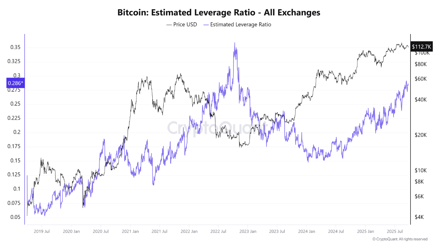Dù vậy, số liệu từ CryptoQuant cho thấy chỉ số BTC Estimated Leverage Ratio (ELR) vào thứ Ba vẫn duy trì ở 0,286 — gần sát mức đỉnh năm là 0,291 ghi nhận hôm 11/9, nhưng còn cách khá xa kỷ lục 0,358 thiết lập năm 2021. Điều này phản ánh rằng thị trường vẫn sử dụng đòn bẩy ở mức vừa phải, chưa rơi vào tình trạng “quá tải”.