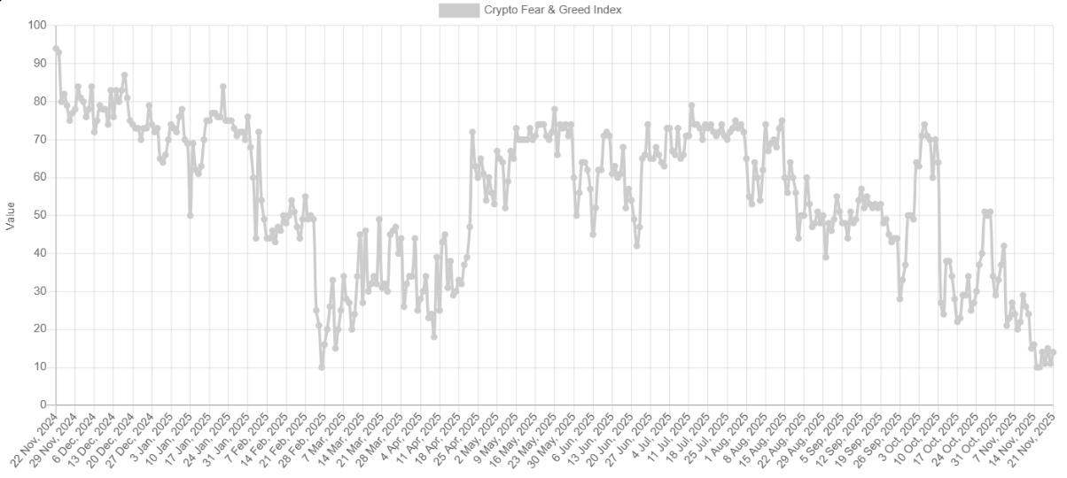 Tâm lý thị trường cũng lao dốc tương ứng. Chỉ số Tham lam và Sợ hãi Crypto trượt về mức 14 trong ngày thứ Sáu, gần với đáy thiết lập cuối tháng 2, cho thấy sự chuyển dịch rõ rệt sang trạng thái “sợ hãi tột độ” khi nhà đầu tư chuẩn bị cho khả năng BTC còn giảm sâu hơn.