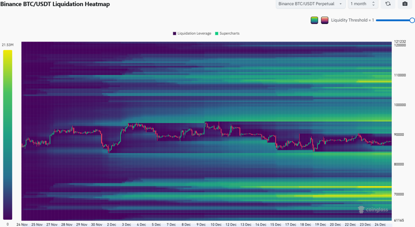 Về mặt kỹ thuật, bản đồ thanh lý cho thấy các vùng $83.500 và $94.700 là những “điểm hút” thanh khoản gần nhất, trong khi khu vực $90.000–$92.700 hình thành một cụm thanh khoản đáng chú ý cần theo dõi sát.