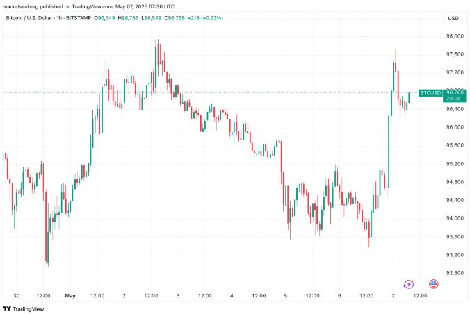 Bitcoin đã chứng kiến sự thay đổi xu hướng ngắn hạn vào ngày 7 tháng 5 khi các yếu tố địa chính trị tạo ra biến động mới cho các tài sản rủi ro.