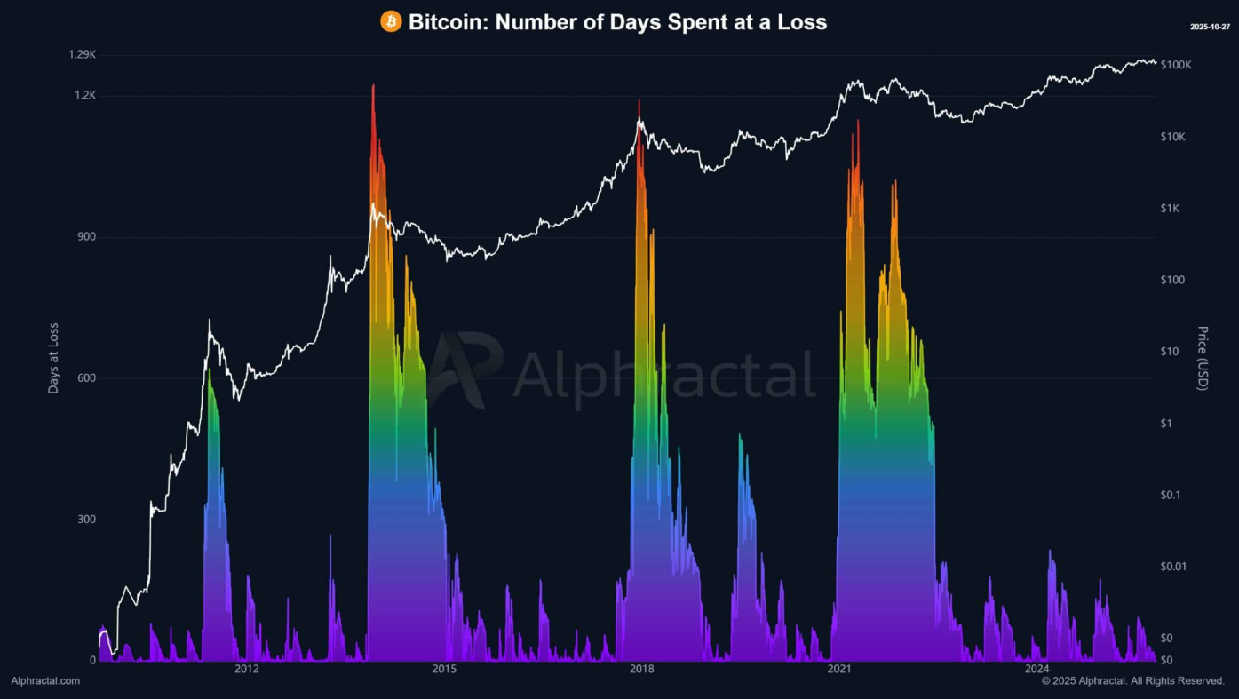 Số ngày mà nhà đầu tư rơi vào trạng thái thua lỗ hiện đã xuống mức thấp nhất trong nhiều năm, cho thấy phần lớn người nắm giữ vẫn đang có lời và không chịu áp lực bán mạnh.