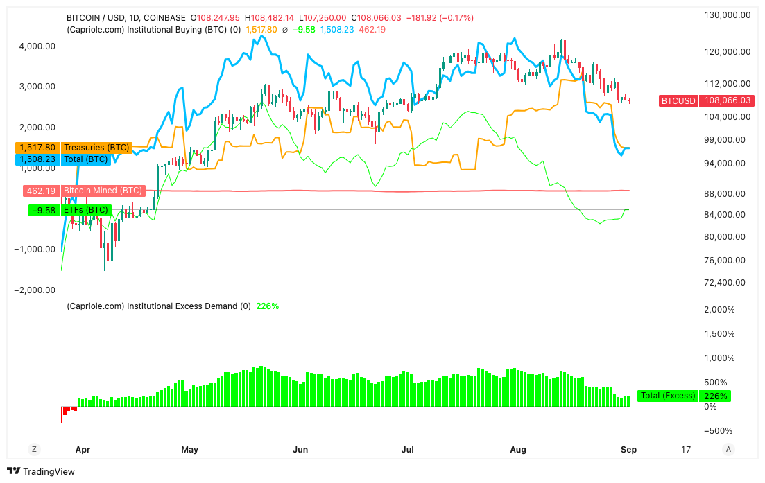 “Lượng mua Bitcoin của các tổ chức đã giảm xuống mức thấp nhất kể từ đầu tháng 4”, ông nhận xét kèm theo dữ liệu của Capriole.