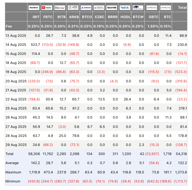 Mặt khác, sự quan tâm của các tổ chức đối với Bitcoin bắt đầu phản ánh tình trạng yếu kém của giá khi tháng 8 ghi nhận 750 triệu đô la vốn rút khỏi ETF.