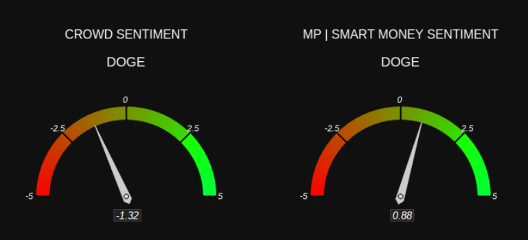 Chỉ số tâm lý thị trường càng làm nổi bật sự khác biệt này. Các nhà đầu tư nhỏ lẻ trên thị trường Futures đang tỏ ra bi quan, với mức đọc của chỉ số ở -1,32, cho thấy họ đang bán memecoin, góp phần kìm hãm đà tăng giá.