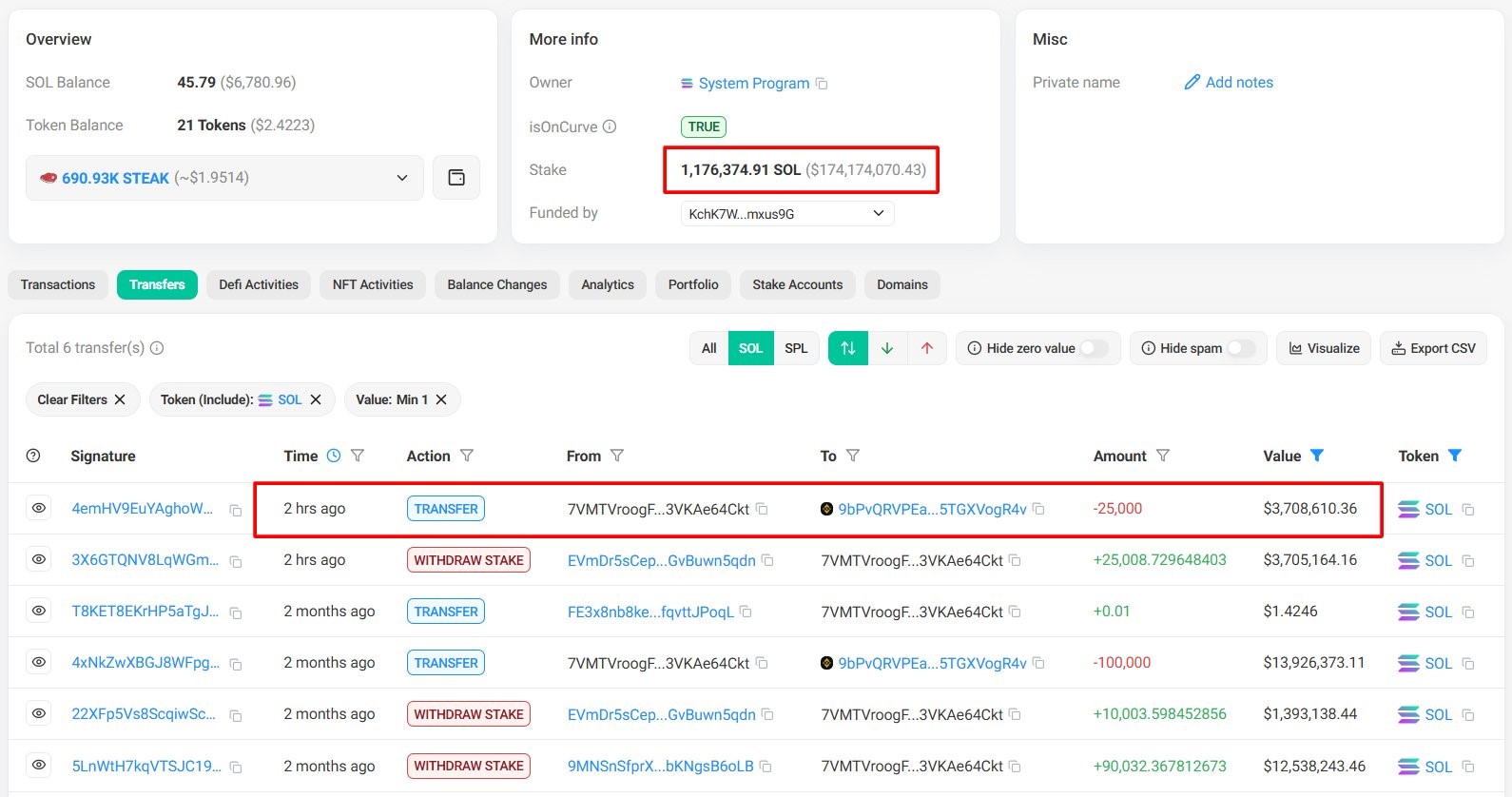 Tuy nhiên, đáng chú ý là địa chỉ vẫn đang hodl 1,17 triệu SOL, trị giá 174,17 triệu đô la, trong các hợp đồng staking.
