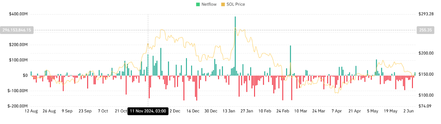 Dữ liệu từ Coinglass cũng tiết lộ một thay đổi đáng chú ý trong hoạt động sàn giao dịch. Chẳng hạn, dòng chảy ròng của SOL đã chuyển sang dương lần đầu tiên sau 16 ngày, nghĩa là dòng tiền chảy vào đã vượt qua dòng tiền chảy ra – đây thường là dấu hiệu báo trước sẽ gia tăng áp lực bán.