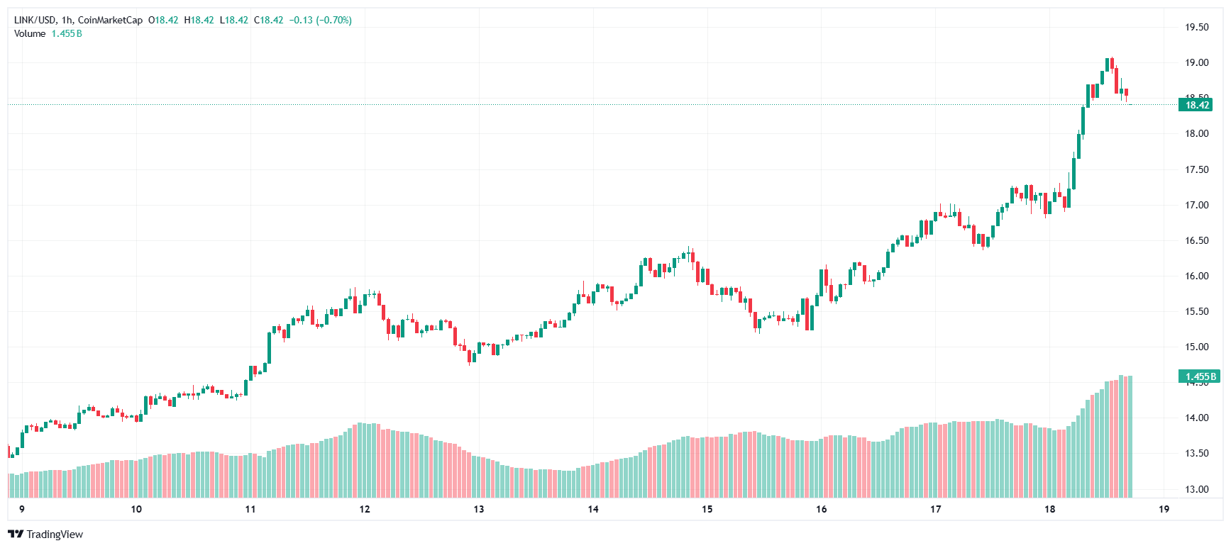 Trong 24 giờ qua, giá Chainlink (LINK) đã tăng gần 10%, thu hút sự chú ý mạnh mẽ từ cộng đồng crypto. Khi bức tranh pháp lý dần sáng tỏ, LINK đang từng bước khẳng định vị thế là cầu nối chiến lược giữa nền tài chính truyền thống và blockchain.