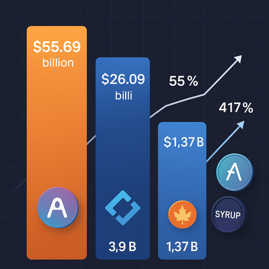 Dữ liệu từ Artemis cho thấy xu hướng này đang diễn ra rõ rệt. Tổng giá trị khóa (TVL) trên các nền tảng cho vay DeFi hàng đầu đã tăng khoảng 60% trong vòng một năm, đạt khoảng 50–60 tỷ đô la vào giữa tháng 6/2025.