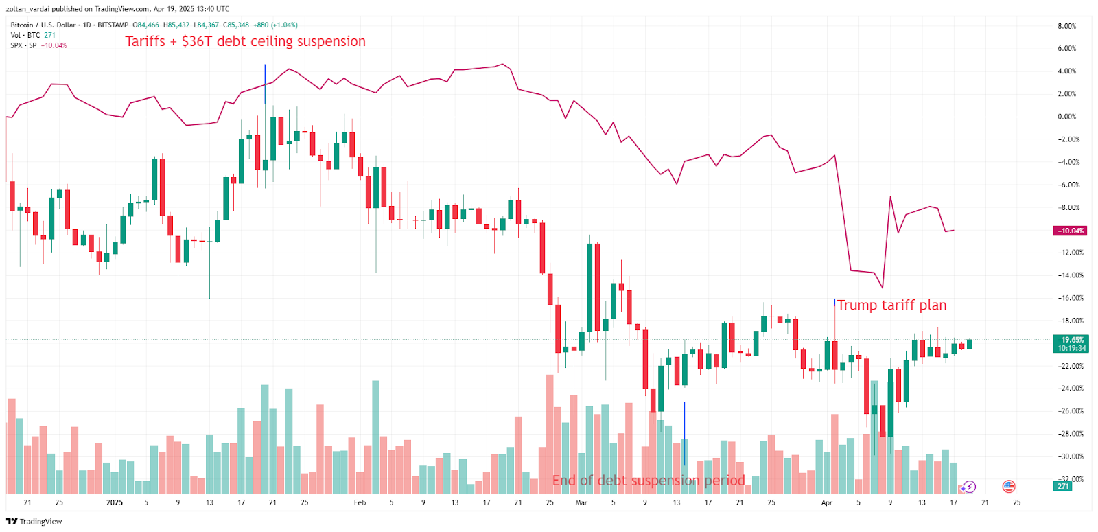 Trước đó một tuần, vào ngày Chủ Nhật 6/4, Bitcoin đã giảm xuống dưới 75.000 USD sau làn sóng lo ngại lan rộng từ đợt bán tháo 5.000 tỷ USD trên chỉ số S&P 500 – mức sụt giảm lớn nhất từng ghi nhận.