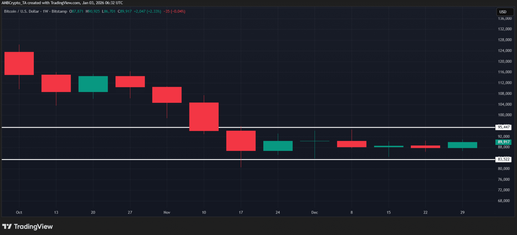 Tuy nhiên, câu hỏi đặt ra là: dữ liệu thực tế có xác nhận nhận định này hay không? Ở góc nhìn kỹ thuật, Bitcoin (BTC) đã khởi đầu năm mới bằng cú tăng 2,8%, chính thức bứt phá mốc 90.000 USD sau hơn sáu tuần đi ngang. Diễn biến này càng củng cố lập luận rằng thị trường có thể đã hoàn tất quá trình tạo đáy.