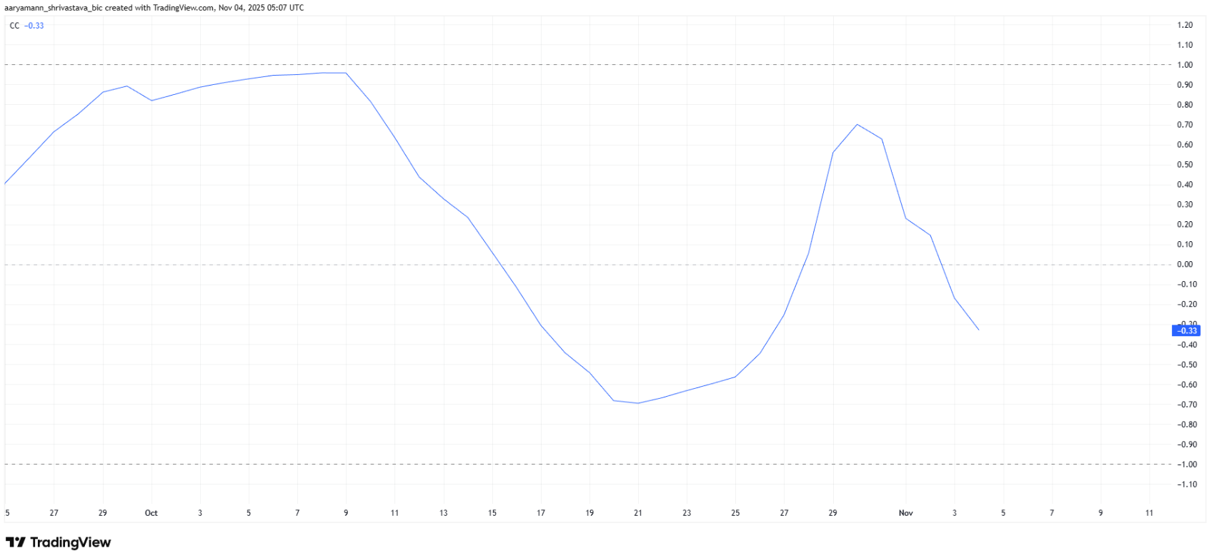 Đáng nói, hệ số tương quan giữa Dash và Bitcoin hiện giảm xuống còn -0,33, đánh dấu lần thứ hai trong quý IV/2025 ghi nhận giá trị âm. Sự tách biệt này mang lại lợi thế rõ rệt cho Dash, nhất là trong bối cảnh Bitcoin vừa rơi xuống dưới ngưỡng 108.000 USD. Điều đó cho thấy đà tăng của Dash đang mang tính độc lập, được thúc đẩy bởi nhu cầu riêng của phân khúc tiền điện tử ẩn danh, chứ không phụ thuộc vào xu hướng chung của thị trường.