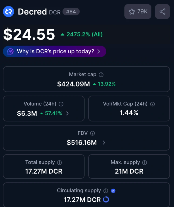 Tính đến thời điểm bài viết được thực hiện vào ngày thứ Bảy, Decred đang giao dịch quanh vùng trên 24 USD, ghi nhận nhịp hồi phục sau ba phiên giảm liên tiếp với mức tăng hơn 7%. Đáng chú ý, token tập trung vào quyền riêng tư này vẫn duy trì vị thế phía trên hai đường trung bình động hàm mũ (EMA) 50 ngày và 200 ngày — một tín hiệu kỹ thuật cho thấy xu hướng tăng vẫn đang chiếm ưu thế.