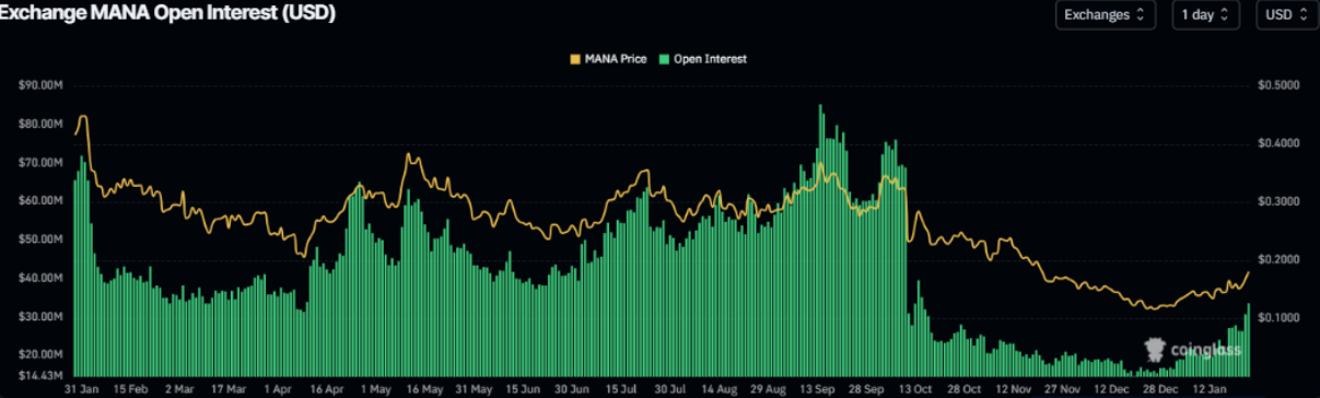 Theo dữ liệu từ CoinGlass, hợp đồng mở (OI) của các hợp đồng tương lai MANA trên các sàn giao dịch đã tăng vọt lên 33,49 triệu USD vào thứ Sáu, cao hơn đáng kể so với mức 20,99 triệu USD ghi nhận vào thứ Bảy tuần trước. Đây cũng là mức OI cao nhất kể từ ngày 16/10, cho thấy dòng tiền mới đang quay trở lại thị trường, đồng thời phản ánh sự gia tăng của lực mua, yếu tố có thể tiếp tục nâng đỡ đà tăng giá hiện tại của MANA.