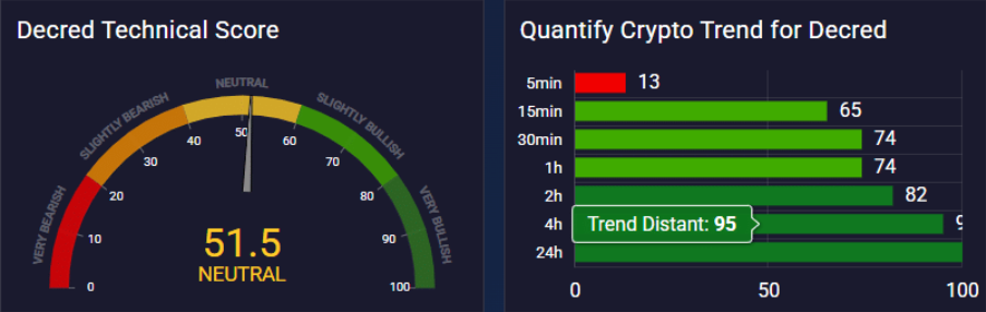 Công cụ Quantify Crypto hiện ghi nhận tín hiệu kỹ thuật ở mức trung lập, giảm nhẹ so với trạng thái hơi tích cực trước đó. Ở khung thời gian ngắn nhất, xu hướng là giảm giá, trong khi khung 15 phút cho mức đọc 54, còn các khung thời gian lớn hơn lại đang tín hiệu tăng.
