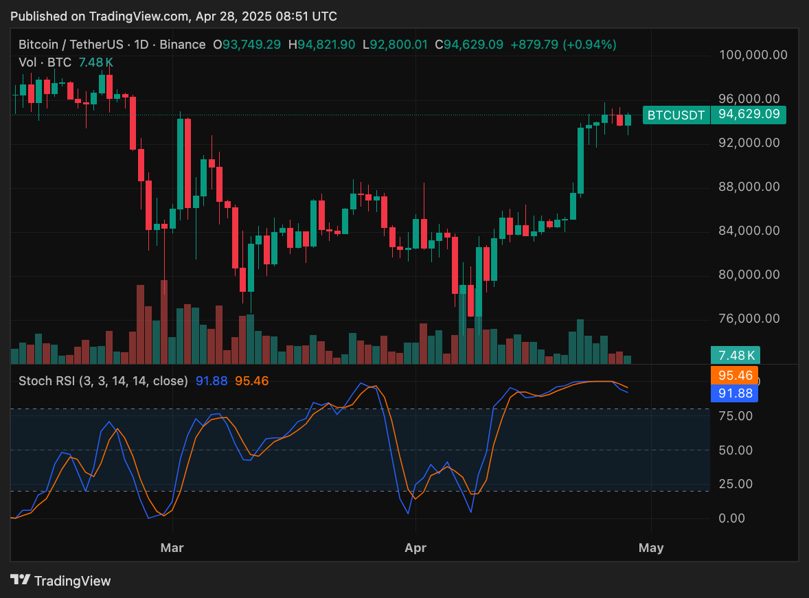 Trong khi đó, trader Roman cho rằng một đợt thoái lui sâu hơn hoàn toàn có khả năng xảy ra. Theo ông, ngưỡng kháng cự 94.000 USD khó bị phá vỡ trong ngắn hạn và khu vực 88.000 USD có thể trở thành điểm kiểm tra tiếp theo nếu áp lực bán gia tăng. Roman cũng lưu ý rằng chỉ báo Stoch RSI vẫn đang nằm trong vùng quá mua – một dấu hiệu cảnh báo khả năng điều chỉnh trong ngắn hạn.