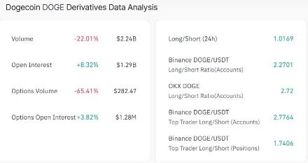 Theo CoinGlass, Lượng mở (Open Interest) của memecoin này đã tăng 10% lên 1,2 tỷ USD, trong khi khối lượng giao dịch phái sinh giảm 23%. Điều này cho thấy sự tích lũy vị thế nhưng hoạt động giao dịch lại giảm bớt.