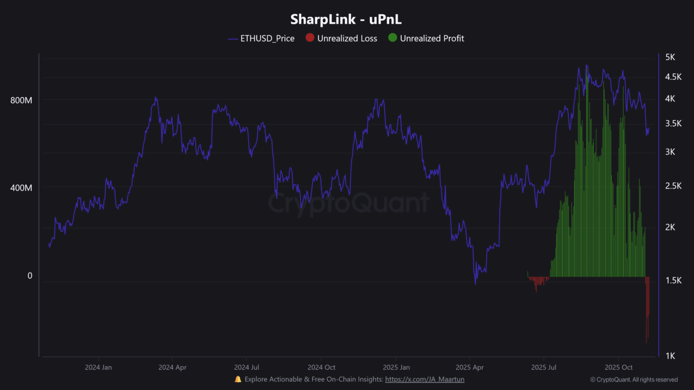 Xét về bản chất, mô hình hoạt động của Sharplink dựa vào chu kỳ tích lũy ETH bằng nguồn vốn cổ phần. Thế nhưng khi cổ phiếu SBET bước vào giai đoạn điều chỉnh trong quý IV, câu hỏi lớn đặt ra là: phải chăng làn sóng hoảng loạn hiện nay đang phơi bày điểm yếu thật sự trong niềm tin của nhà đầu tư — như phân tích từ CryptoQuant đã cảnh báo?