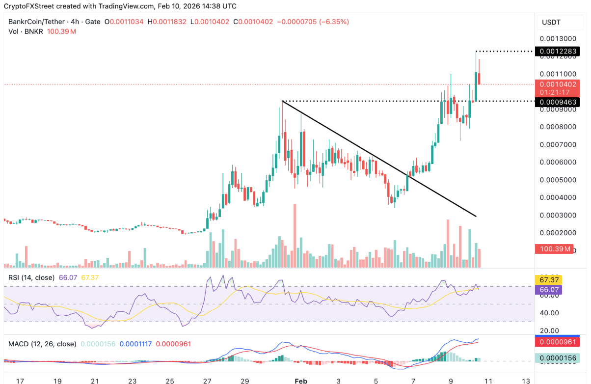 BankrCoin (BNKR) tiếp tục trụ vững trên mốc tâm lý 0,00100 USD sau khi bật tăng lên đỉnh trong ngày tại 0,001233 USD, phản ánh lực cầu ổn định được thúc đẩy bởi sự quan tâm ngày càng gia tăng từ nhóm nhà đầu tư nhỏ lẻ. Đà hứng khởi này cũng lan sang thị trường phái sinh, khi hợp đồng mở (OI) của hợp đồng tương lai tăng vọt, đạt trung bình 660.000 USD trong ngày thứ Tư — chỉ thấp hơn không đáng kể so với mức kỷ lục 682.000 USD ghi nhận một ngày trước đó.