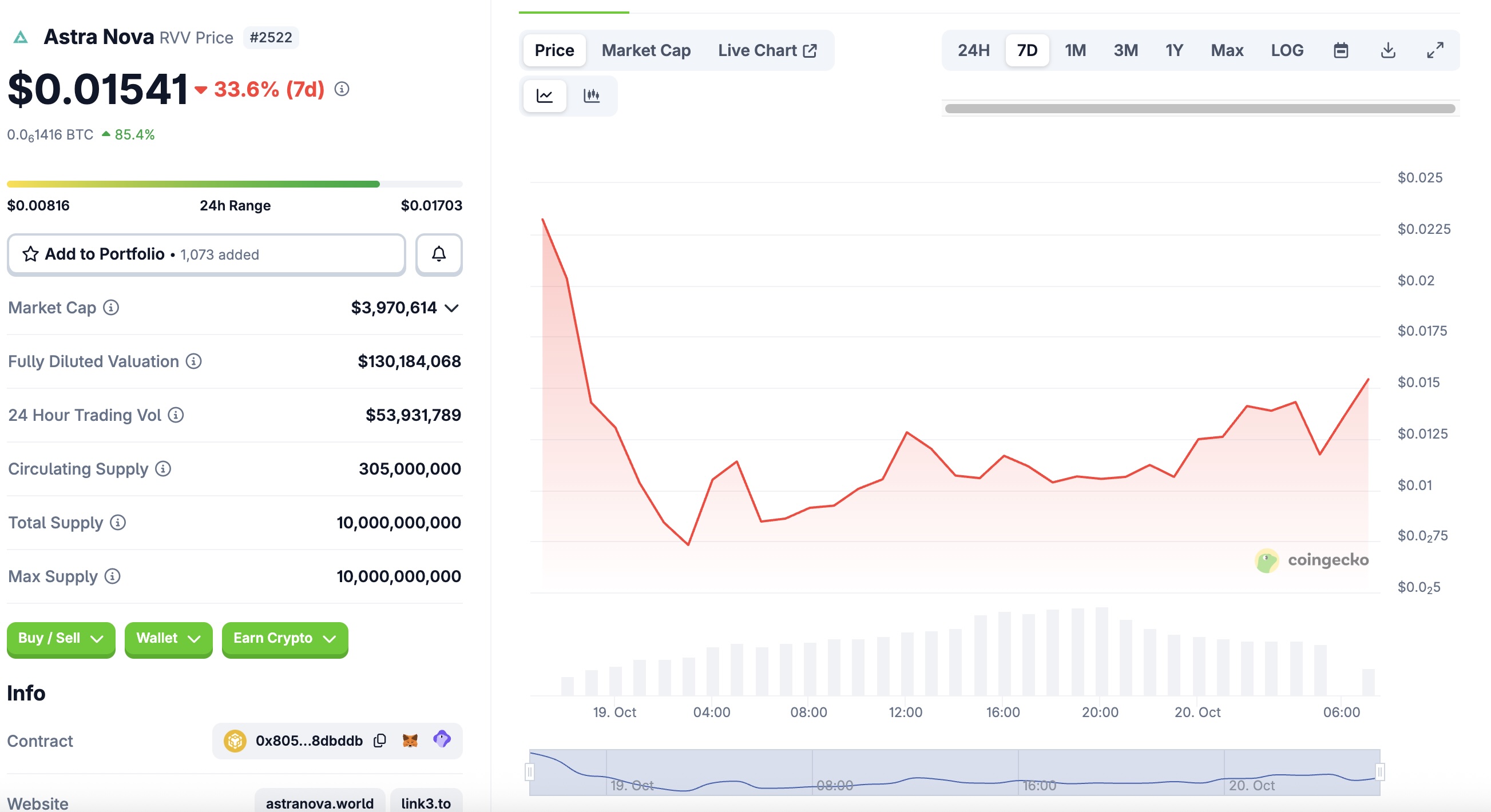 Astra Nova, một dự án AI–crypto tự giới thiệu là “Hệ sinh thái Giải trí AI đầu tiên đến từ Ả Rập Xê Út”, cho biết việc token RVV mới ra mắt bị bán tháo trên thị trường là hậu quả của việc một tài khoản market maker bên thứ ba bị xâm nhập.