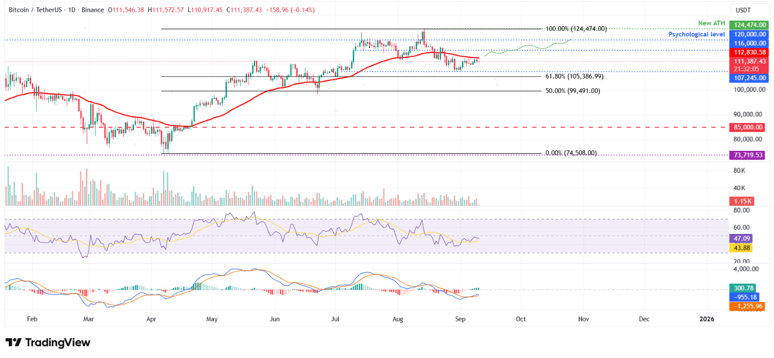 Trong kịch bản tiêu cực, nếu BTC không thể bứt phá qua đường EMA 50 ngày tại 112.830 USD, giá có thể chịu áp lực điều chỉnh và lùi về vùng hỗ trợ then chốt quanh 107.245 USD.