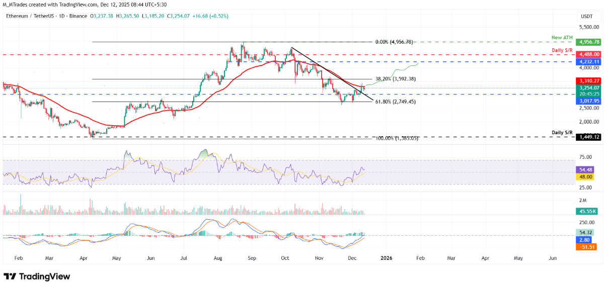 Nếu Ethereum có thể đóng cửa vững chắc trên đường EMA 50 ngày tại 3.310 USD, động lực tăng giá nhiều khả năng sẽ được kích hoạt, mở đường hướng tới vùng kháng cự quan trọng tiếp theo quanh 3.592 USD.