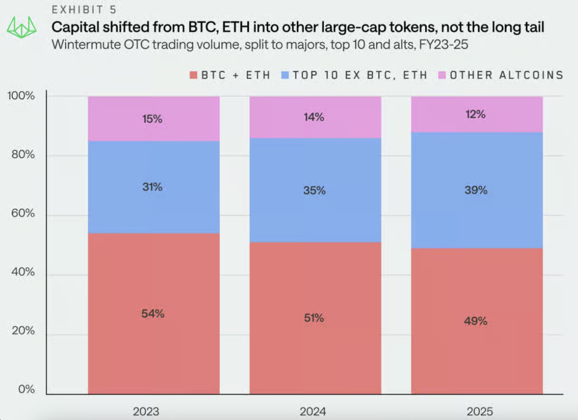“Vốn không còn lan tỏa trên diện rộng toàn thị trường,” Wintermute nhận định trong báo cáo OTC tài sản số năm 2025, được xây dựng dựa trên dữ liệu giao dịch OTC độc quyền của công ty.