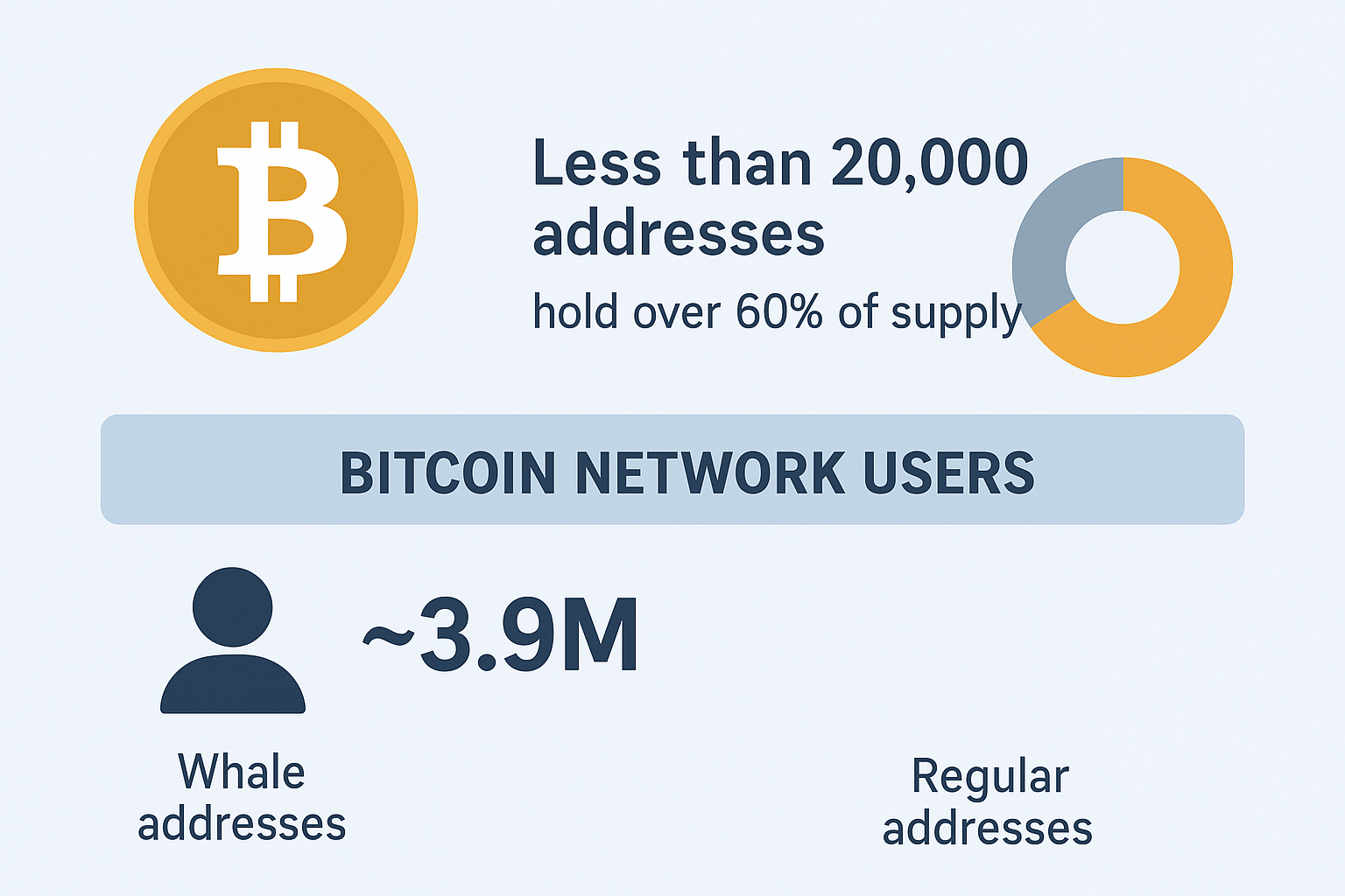 Sani, đồng sáng lập nền tảng phân tích dữ liệu on-chain Time Chain Index, đã nghiên cứu tập dữ liệu địa chỉ Bitcoin để ước tính số lượng người dùng mạng lưới. Kết quả cho thấy chưa đến 20.000 địa chỉ đang nắm giữ hơn 60% tổng nguồn cung BTC, trong khi khoảng 3,9 triệu người dùng hoạt động nắm giữ phần còn lại.