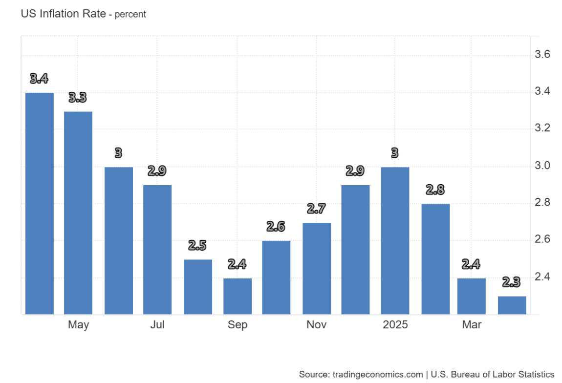 Mặc dù có những căng thẳng từ các cuộc đối đầu thương mại, chỉ số lạm phát tháng 4 vẫn ghi nhận mức giảm nhẹ xuống còn 2,3%, thấp hơn 0,1% so với tháng 3. Dù không phải bước giảm đột phá, nhưng đủ để thắp sáng hy vọng về một chính sách nới lỏng tiền tệ.