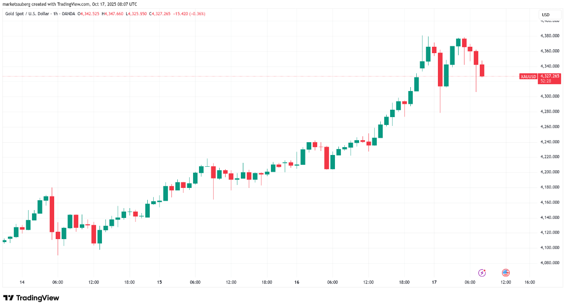 Biểu đồ XAU/USD hàng giờ | Nguồn: TradingView
