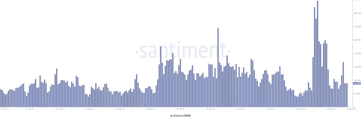 Dữ liệu khối lượng XMR | Nguồn: Santiment
