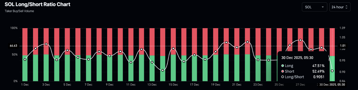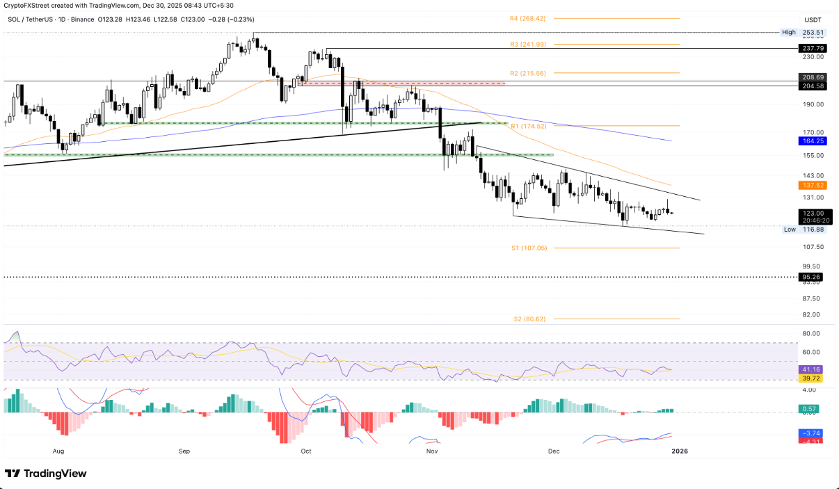 Ở chiều tích cực, nếu SOL bứt phá lên trên đường xu hướng phía trên — nối các đỉnh ngày 12/11 và 9/12, quanh vùng 133 USD — đà tăng có thể được củng cố, mở đường cho giá hướng tới kiểm tra đường EMA 50 ngày tại mốc 137 USD.