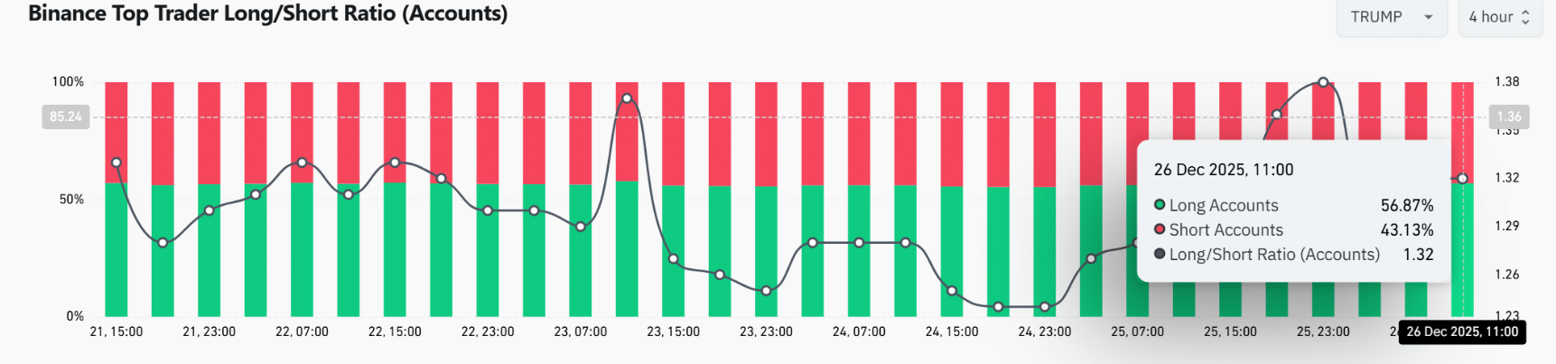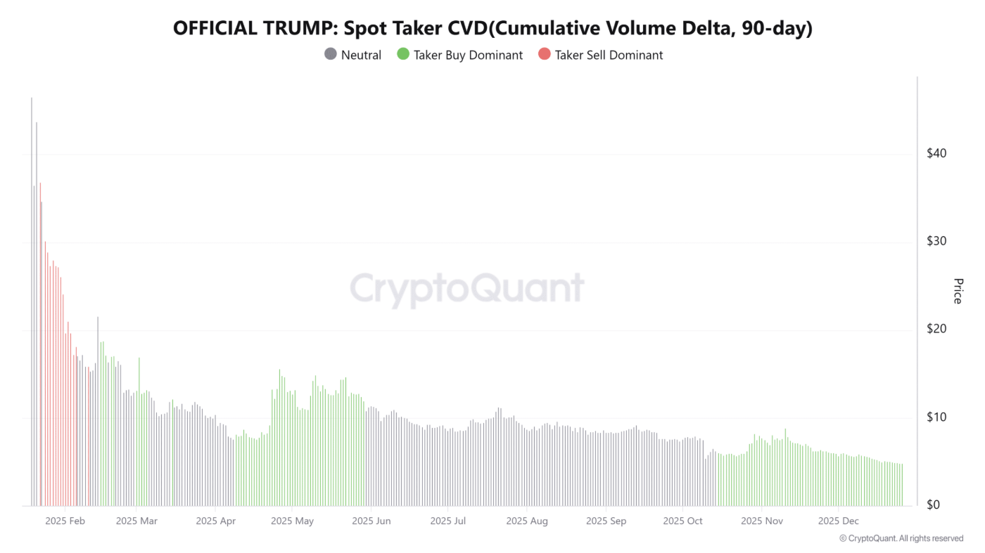Tựu trung, việc TRUMP không thể giành lại mốc 5,20 USD khiến cấu trúc giá vẫn ở trạng thái dễ tổn thương, với thiên hướng nghiêng về áp lực giảm tiếp diễn. Dù phe bò vẫn đang hấp thụ nguồn cung, lực cầu hiện tại vẫn chưa đủ mạnh để kích hoạt một pha mở rộng tăng giá rõ ràng.