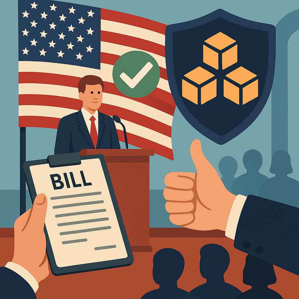 Dự luật, do Hạ nghị sĩ Kat Cammack bảo trợ và đồng bảo trợ bởi Hạ nghị sĩ Darren Soto, đã được thông qua bằng hình thức biểu quyết bằng miệng theo thủ tục rút gọn. Dự luật mang tên “Đạo luật Triển khai Blockchain Mỹ 2025” hiện đã được chuyển lên Thượng viện để xem xét.