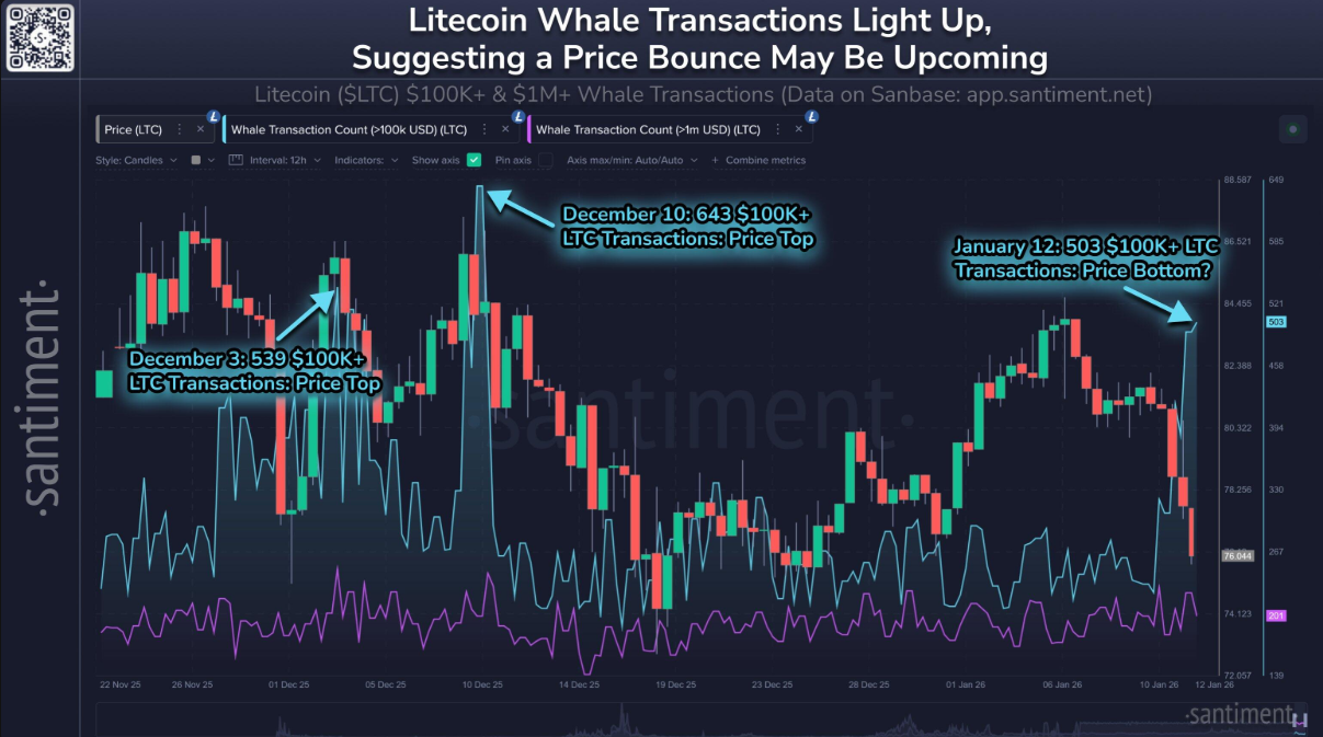Litecoin (LTC) đang ghi nhận những tín hiệu đáng chú ý khi hoạt động của các “cá voi” cùng mức độ quan tâm trên thị trường phái sinh đồng loạt gia tăng mạnh trong ba ngày qua, bất chấp giá vẫn dao động trong trạng thái khá trầm lắng.