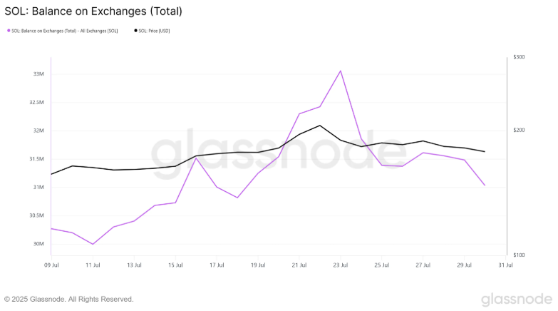 Số dư Solana trên các sàn giao dịch đã giảm 2,03 triệu SOL trong tuần qua, báo hiệu sự tích lũy gia tăng. Điều này cho thấy các nhà đầu tư đã mua lượng SOL trị giá 367 triệu USD, với kỳ vọng giá sẽ phục hồi.