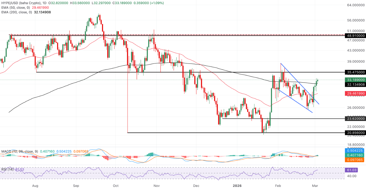 Phân tích kỹ thuật: Hyperliquid có thể mở rộng đà phục hồi lên trên 35 USD?