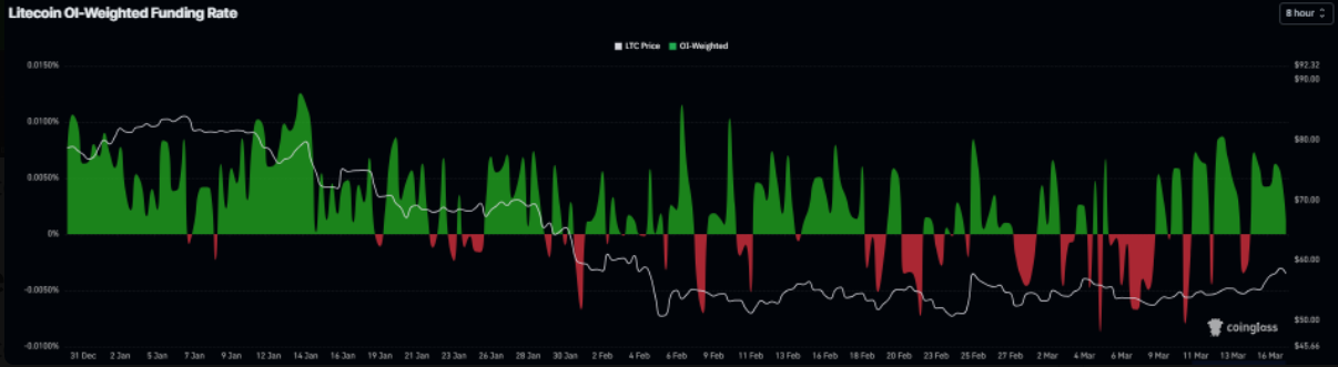 Ở thị trường phái sinh, các tín hiệu cũng chưa thực sự đồng thuận. Tỷ lệ long/short của LTC trên CoinGlass ở mức 0,89 trong ngày thứ Tư — thấp hơn 1 — cho thấy phần lớn trader đang nghiêng về kịch bản giá giảm.