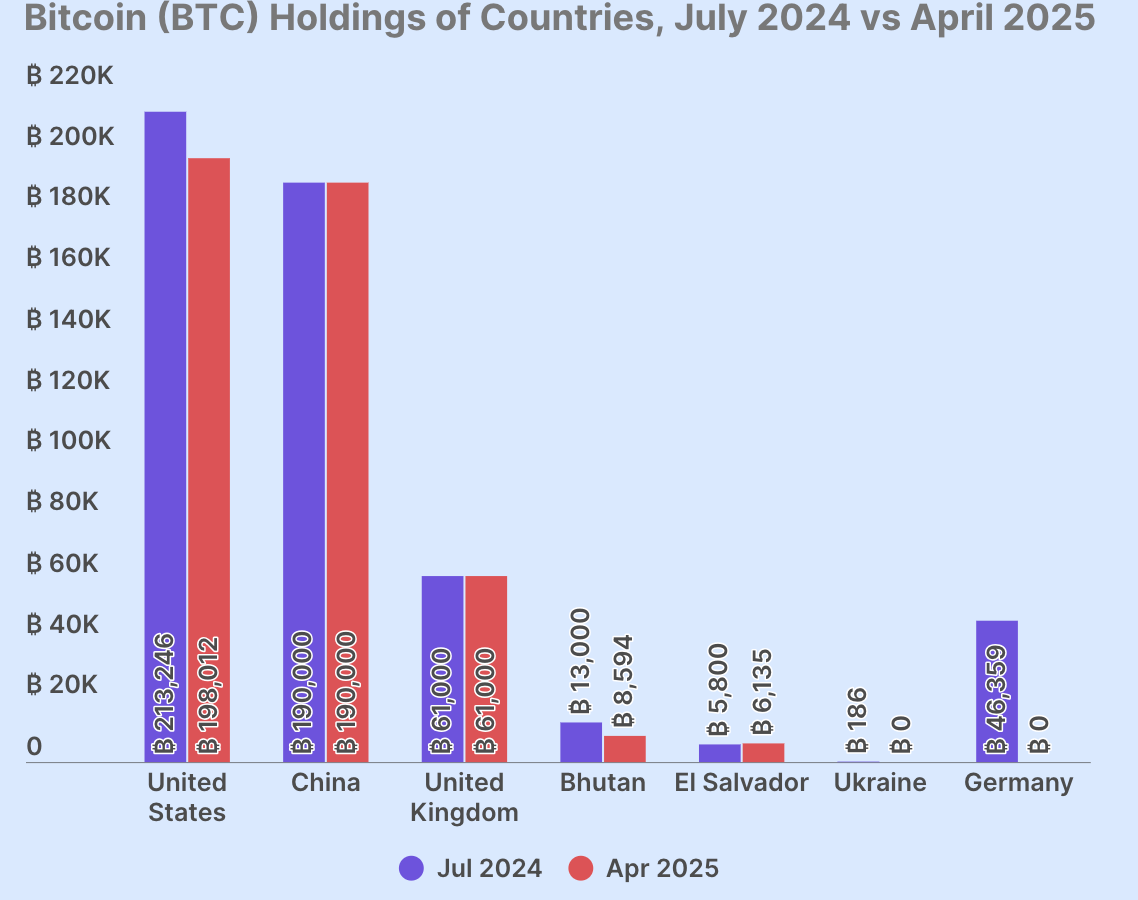 Dù con số tuyệt đối vẫn rất ấn tượng, xu hướng chung lại cho thấy sự suy giảm. Trong số bảy chính phủ từng sở hữu Bitcoin, hai nước đã bán hết toàn bộ lượng nắm giữ, và chỉ còn El Salvador là đang tiếp tục mua thêm.