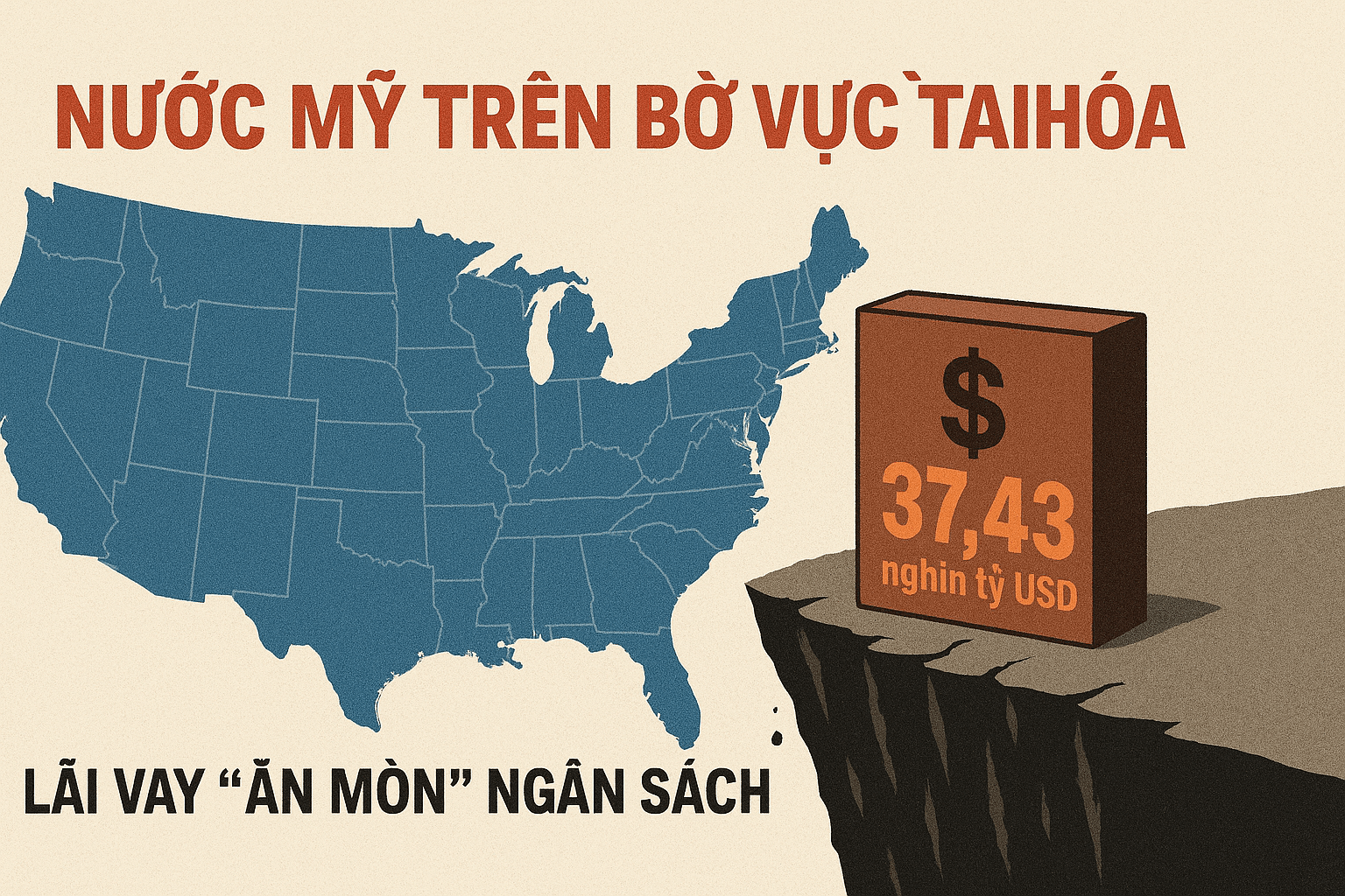 Tính đến tháng 9/2025, tổng nợ công của Mỹ đã vượt 37,43 nghìn tỷ USD – một con số lịch sử. Đáng chú ý, gần 1/4 mỗi đồng thuế mà chính phủ thu về hiện đang được dùng chỉ để trả lãi nợ.